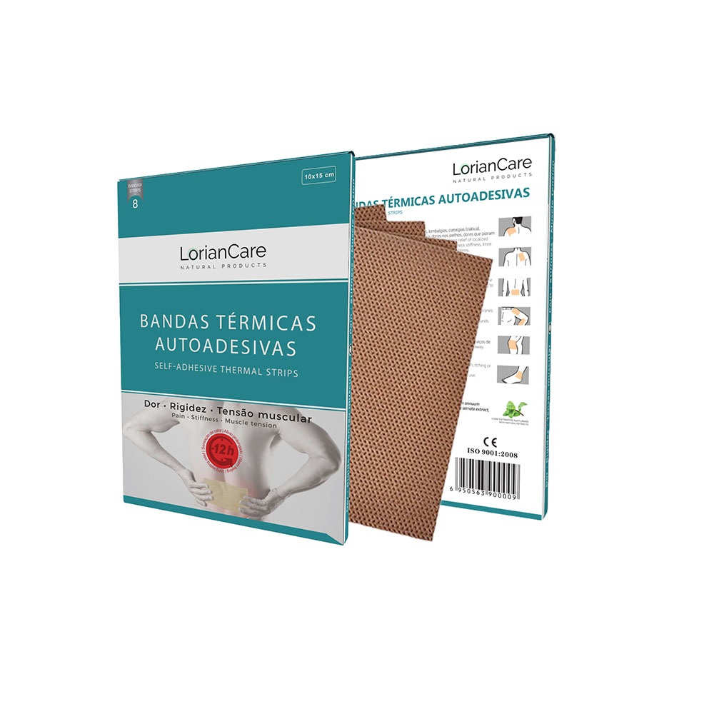 Cada embalagem contém 8 Bandas Térmicas Autoadesivas de utilização única.